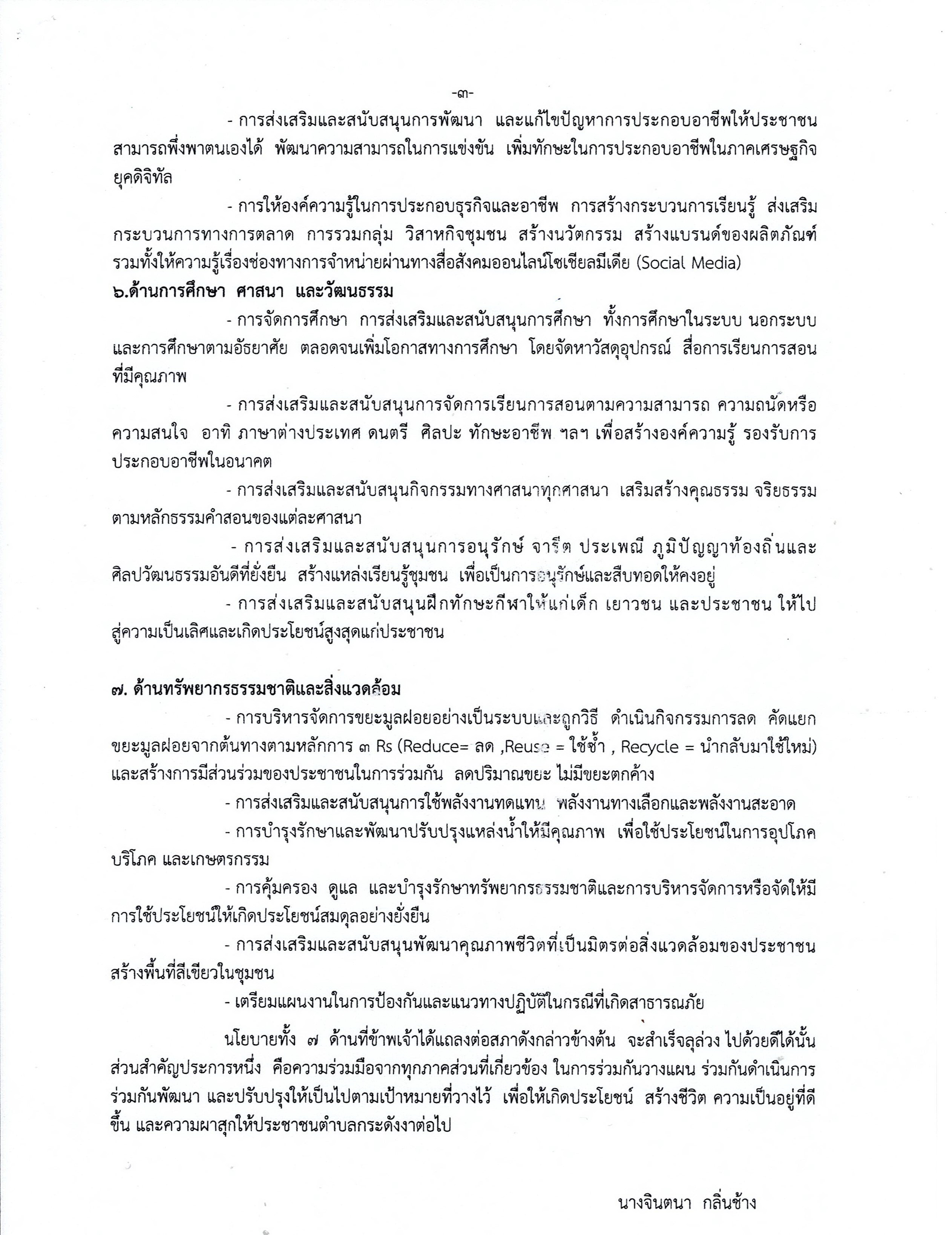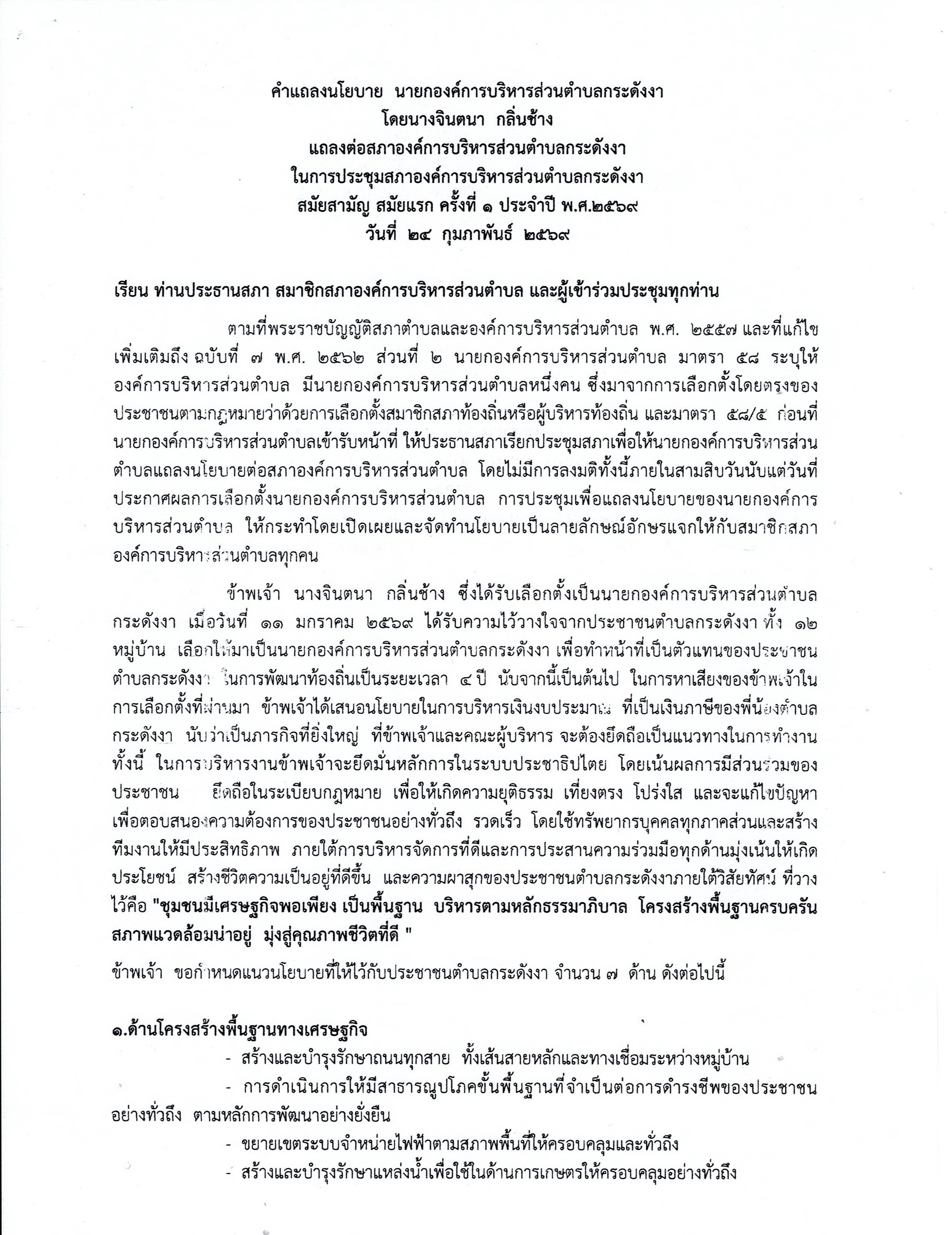 คำแถลงนโยบาย นายกองค์การบริหารส่วนตำบลกระดังงา